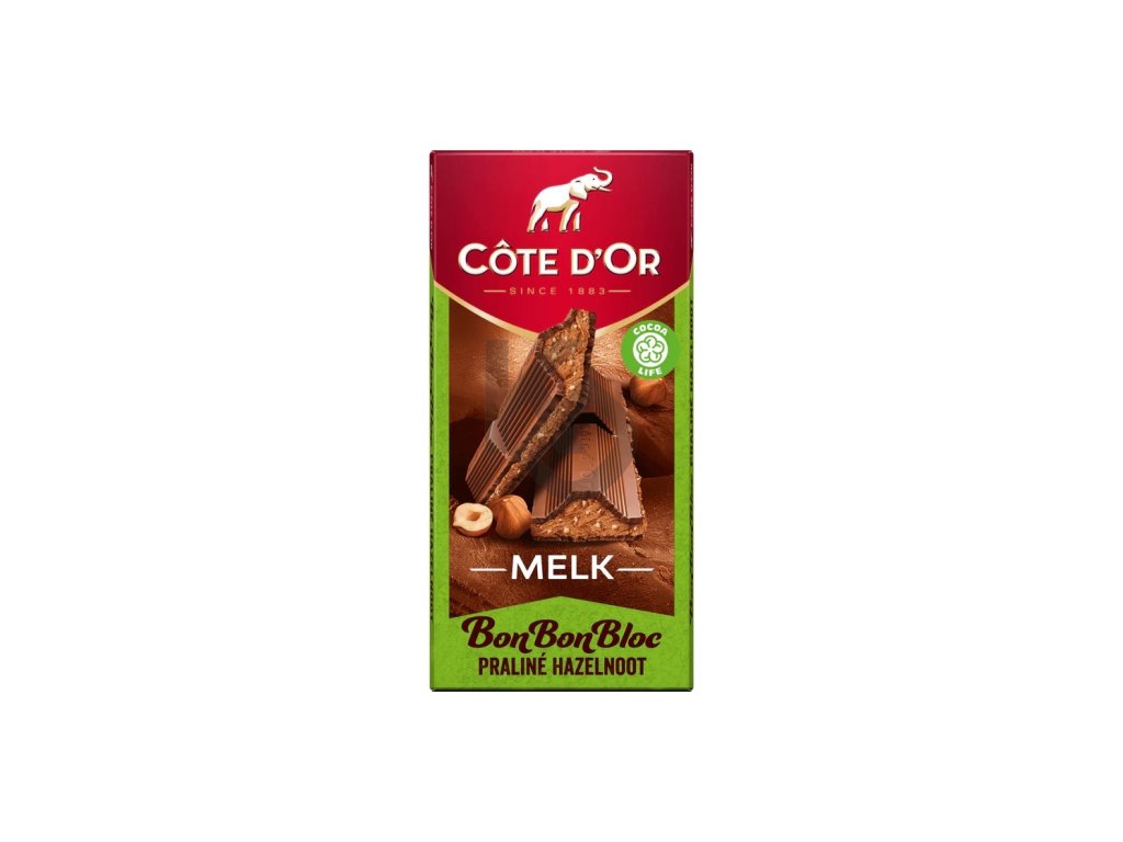 Cote d'Or Bon Bon Bloc S Lískovými Oříšky A Pralinkovou Náplní 200g