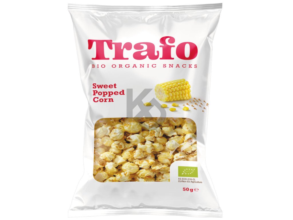 Bio sladký popcorn 50g. Trafo Organic Sweet Popcorn je zdravá svačinka vyrobená ze 100% organických surovin. Je vyrobena z organické kukuřice, slunečnicového oleje a slazena organickým třtinovým a hnědým třtinovým cukrem. Je to lahodně sladká a uspokojivá pochoutka. Neobsahuje umělé přísady, konzervanty ani lepek, je ideální pro zdravé jedince, kteří hledají chutnou a zároveň výživnou alternativu ke běžným svačinkám. Kukuřice (53 %), slunečnicový olej, třtinový cukr(17,8 %), hnědý třtinový cukr (8,2 %), mořská sůl. Certifikované bio pěstování Energie: 520 kJ / 124 kcal Tuk: 6,3 g Nasycené mastné kyseliny: 0,5 g Sacharidy: 15g Cukry: 6,5 g Vláknina: 2,2 g Bílkoviny: 1 g Sůl: 0,04 g. Prodávající: KlauDa Trade s. r. o. Branická 213/53 Praha 4 - Braník 147 00. Organic products of the brand Trafo are certified by the inspection body NL-BIO-01.EU- / Non-EU-Agriculture. Distributor: FZ Organic Food BV, Oppers 58, NL-8471 ZM Wolvegainfo@fzorganicfood.com www.fzorganicfood.com.